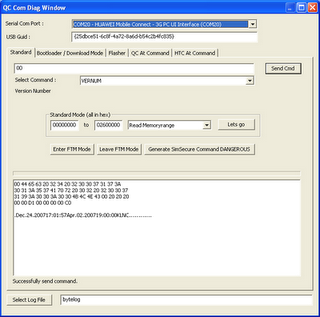 run QC BQS Analyzer, choose 'Communication' - 'Use Com/USB Port'. a 'QC Com Diag Window' will appear. test your connection.